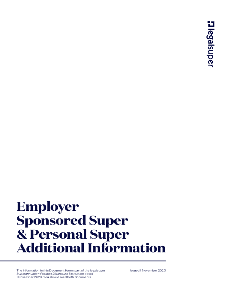 Employer Sponsored Super & Personal Super Additional Information The information in this Document forms part of the legal super Superannuation Product Disclosure Statement dated 1 November 2020. You