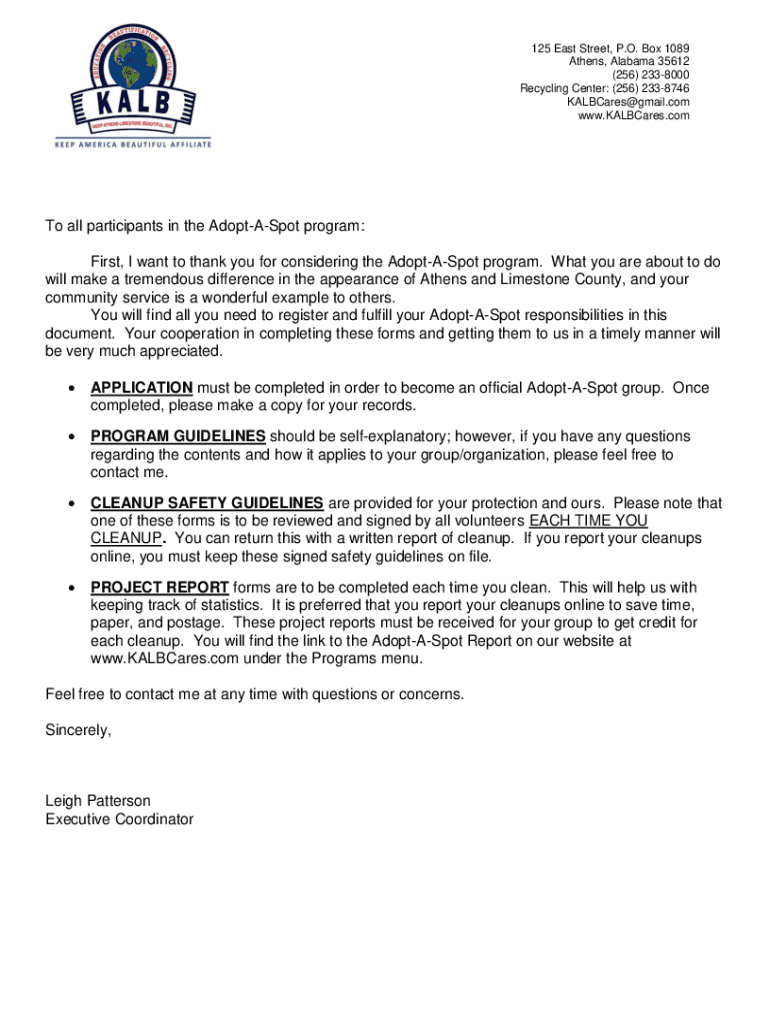 www.KALBCares.comTo all participants in the AdoptASpot program: