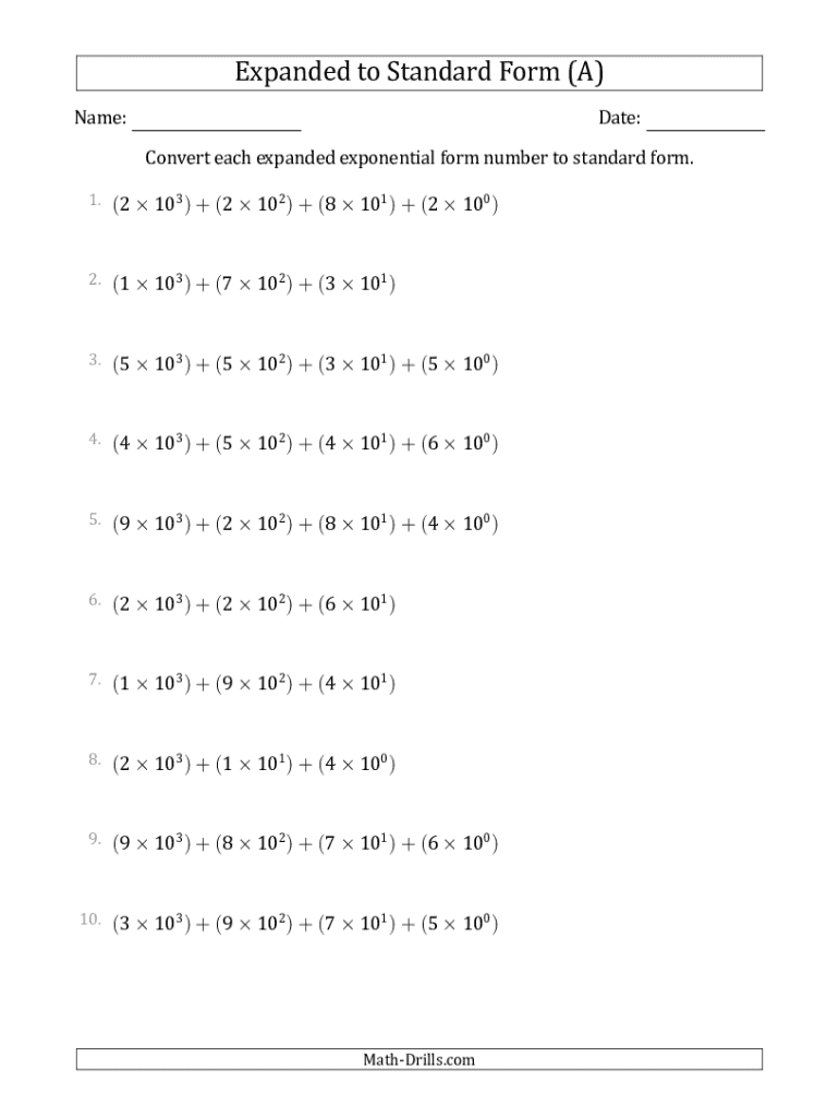 Get the free Number Sense Worksheet -- Converting Expanded Exponential Form Numbers to Standard F...
