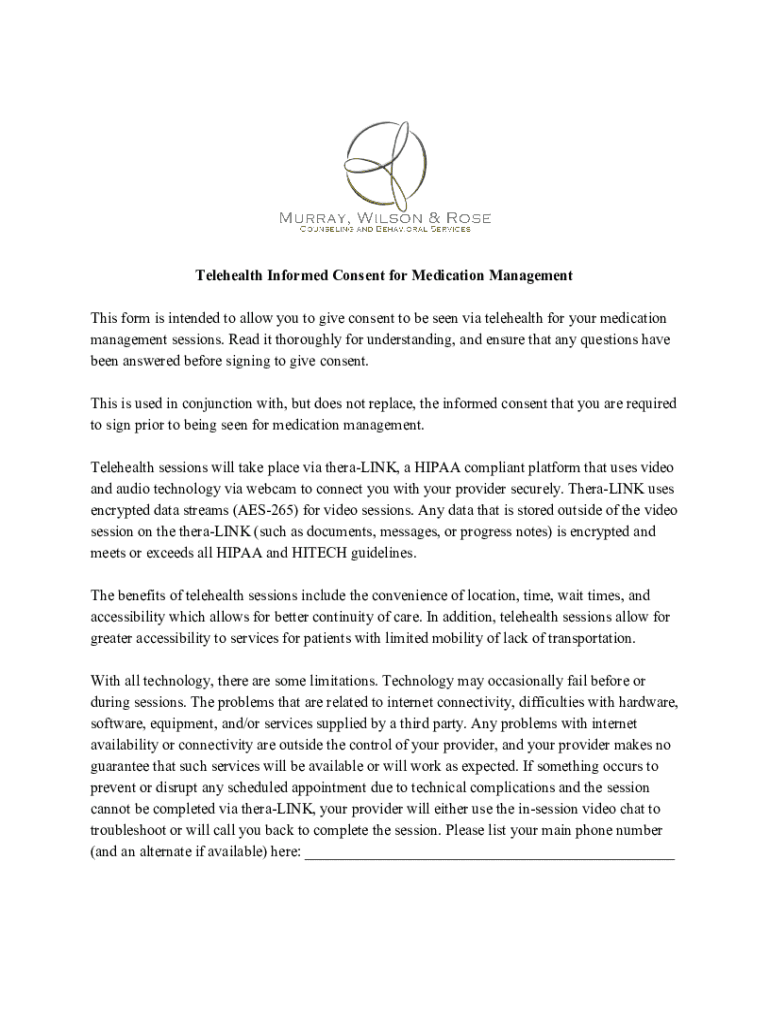 Telehealth Informed Consent for Medication Management