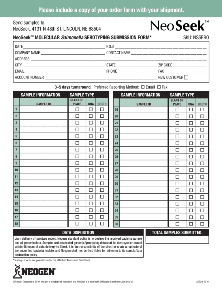 Neoseek Molecular Salmonella Serotyping is not the form you're looking for?Search for another form here.