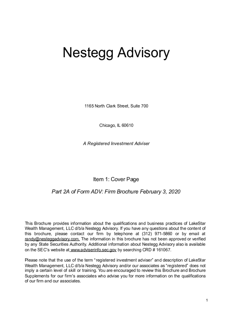 Nest egg Advisory1165 North Clark Street, Suite 700Chicago, IL 60610A Registered Investment Advisories 1: Cover Page