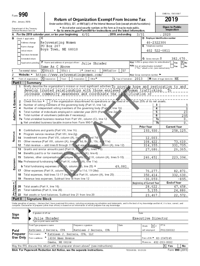 Form990OMB No. 154500472019Return of Organization Exempt From Income Tax(Rev. January 2020)Under section 501(c), 527, or 4947(a)(1) of the Internal Revenue Code (except private foundations)G Do not