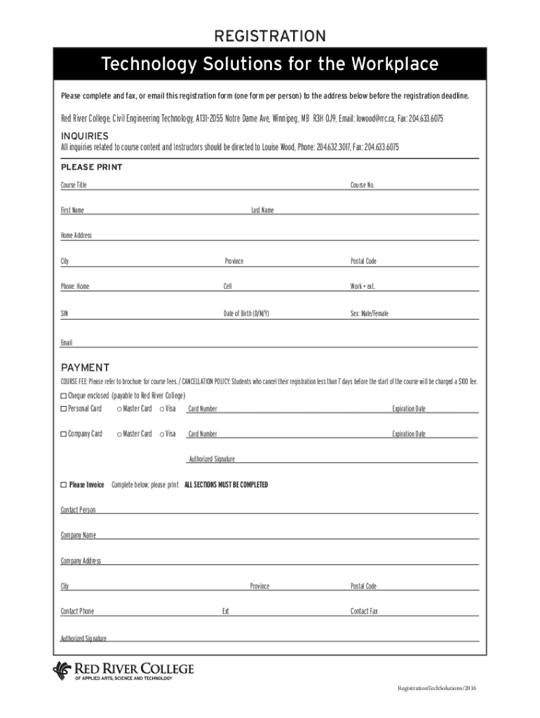 Please complete and fax, or email this registration form (one form per person) to the address below before the registration deadline. Red River College,