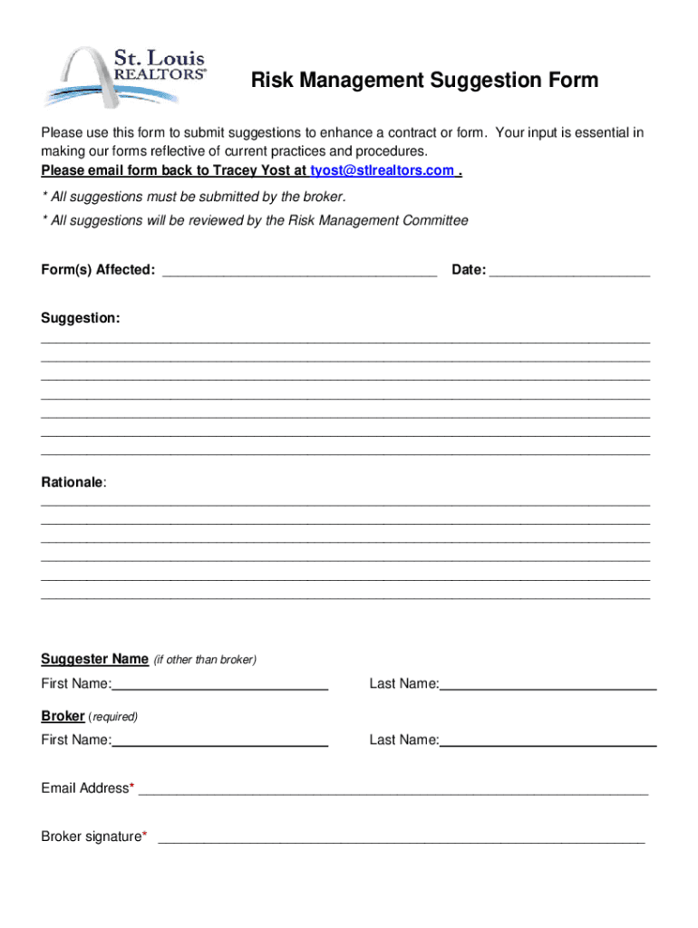 Get the free Risk Management Suggestion Form - St. Louis REALTORS