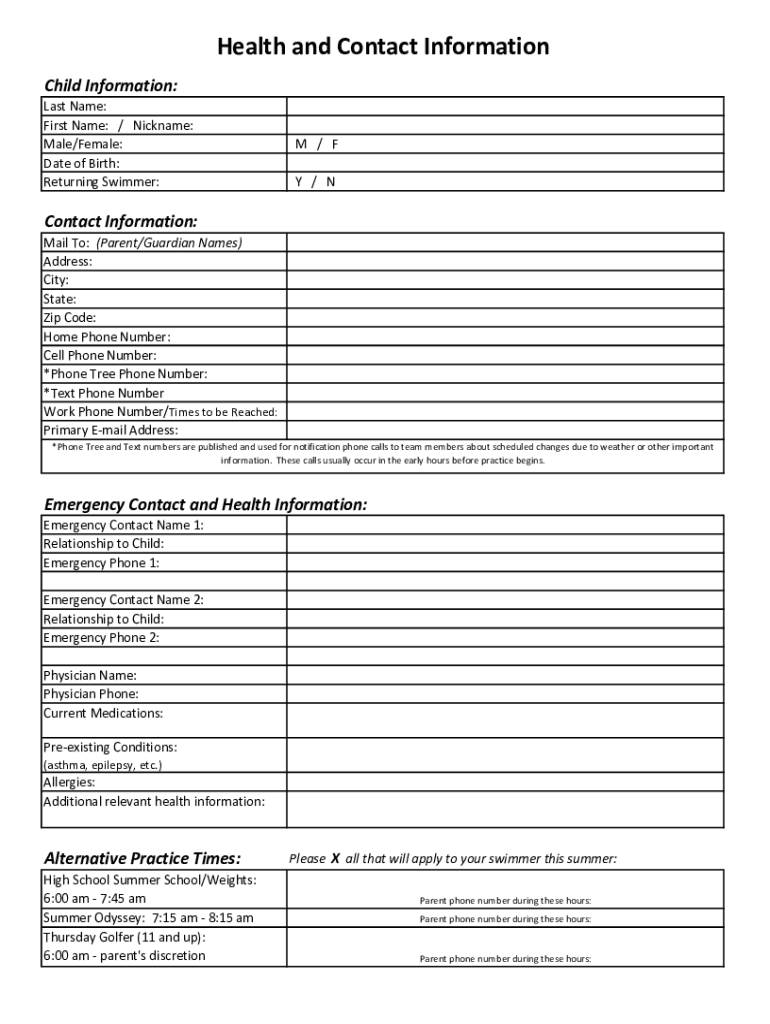 Health and Contact Information