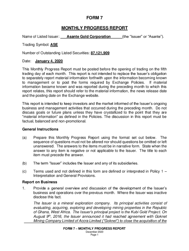 Name of Listed Issuer:As ante Gold Corporation(the Issuer or As ante). Trading Symbol: ASE