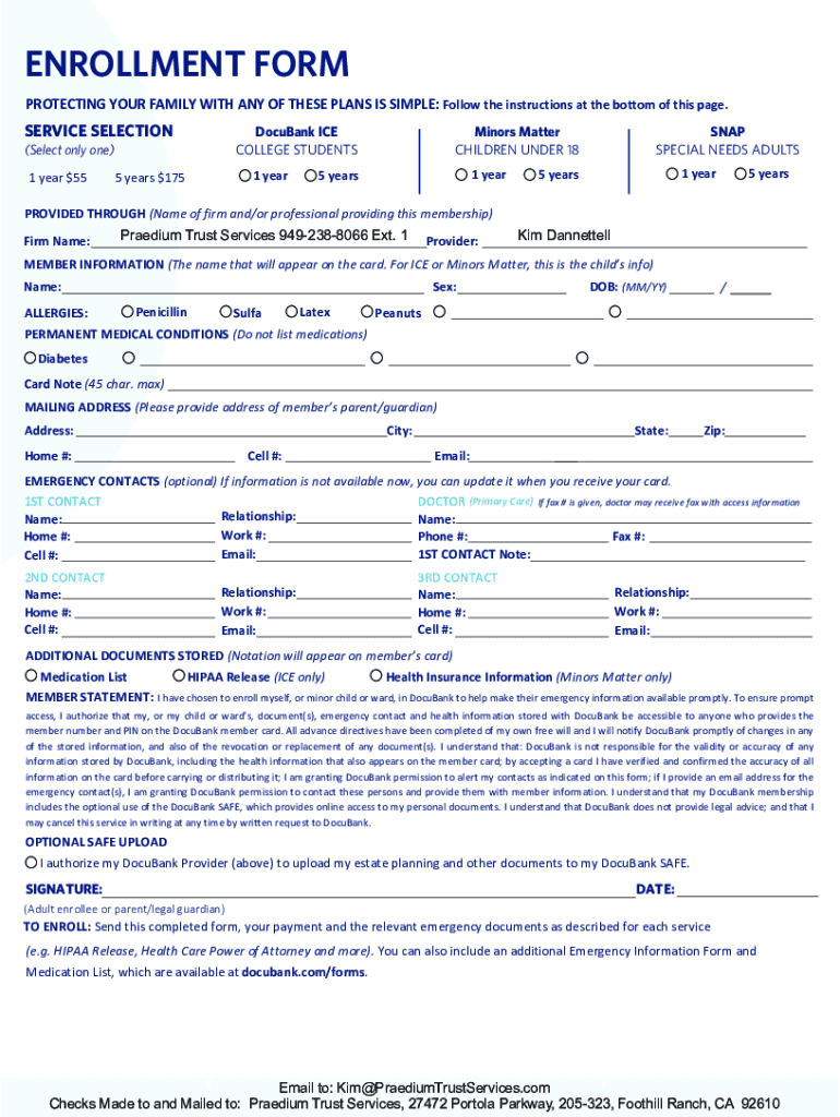 To fill out docubank family - children, parents or legal guardians can create an account on the docubank website and start uploading important documents and information related to their children.