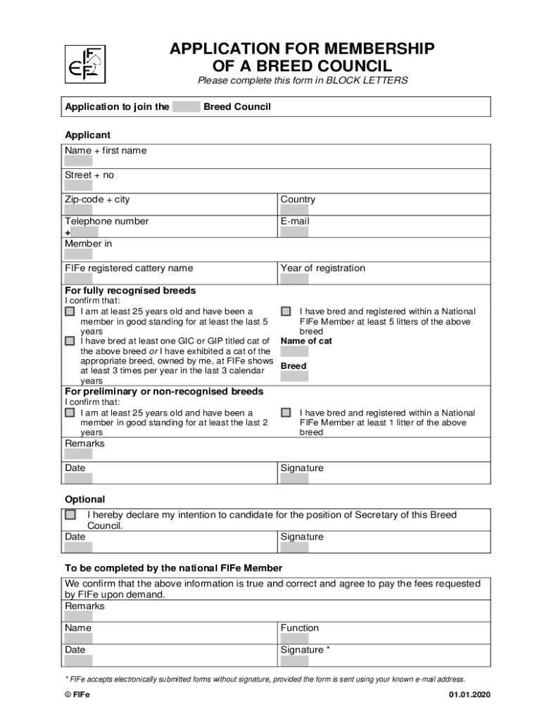 Get the free Breed Council Application