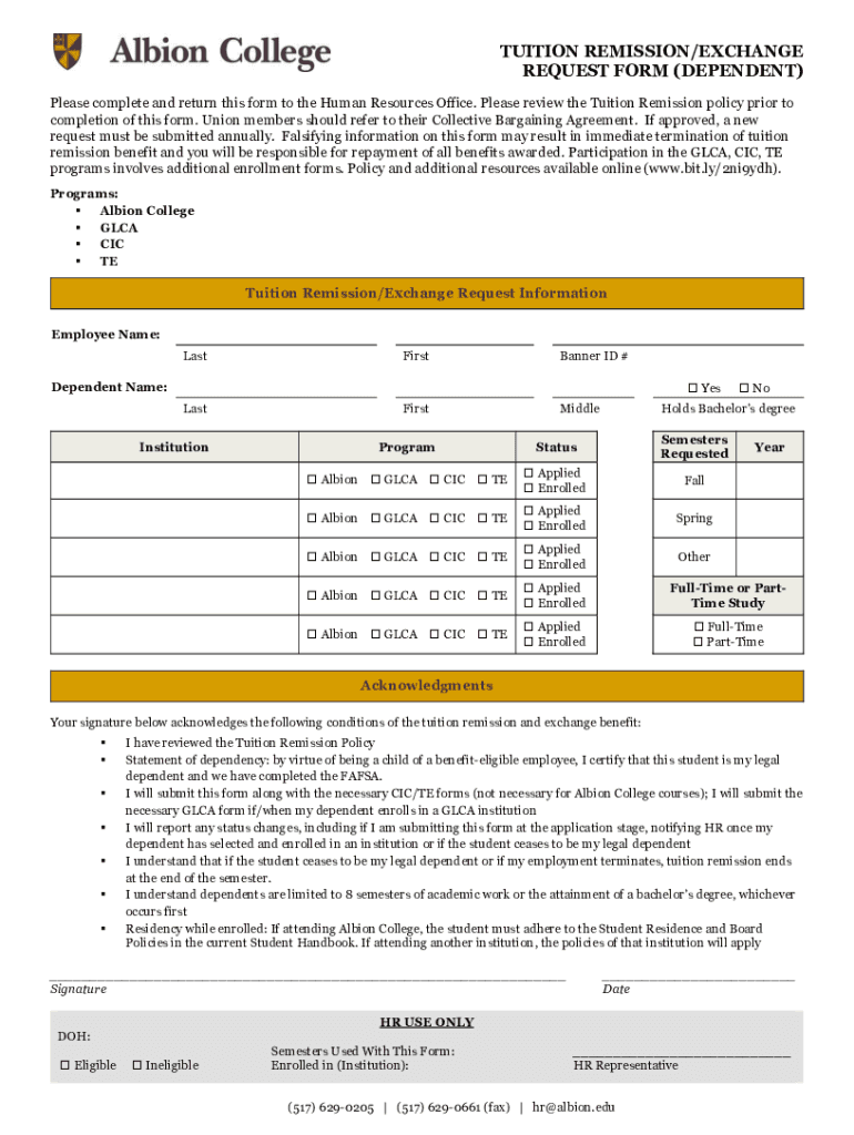 Get the free Tuition Remission/Exchange Request Form for Dependents