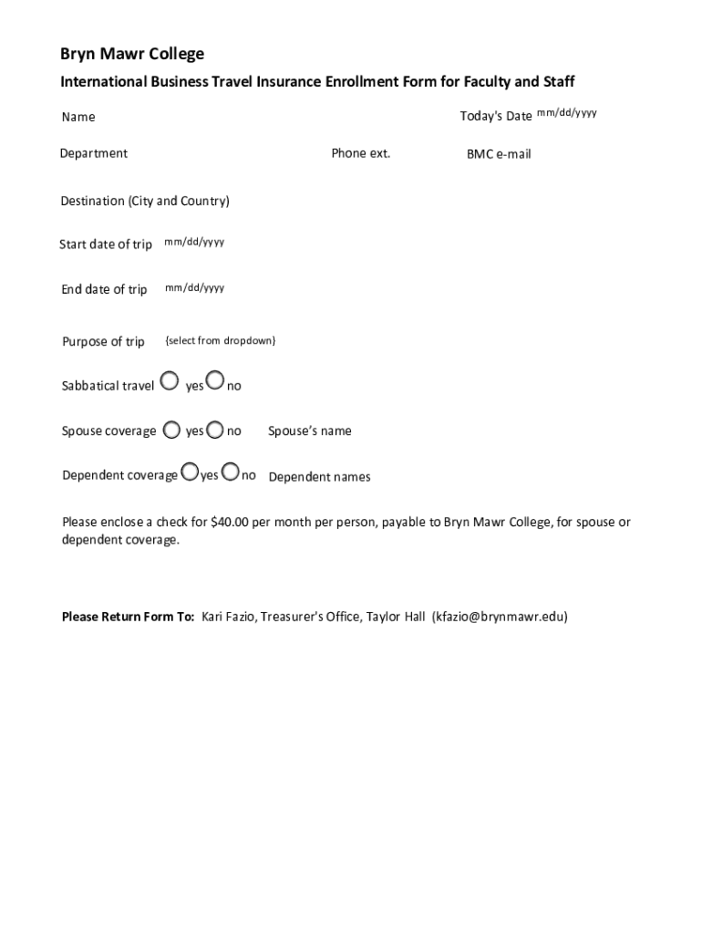 Get the free Bryn Mawr College International Business Travel Insurance form