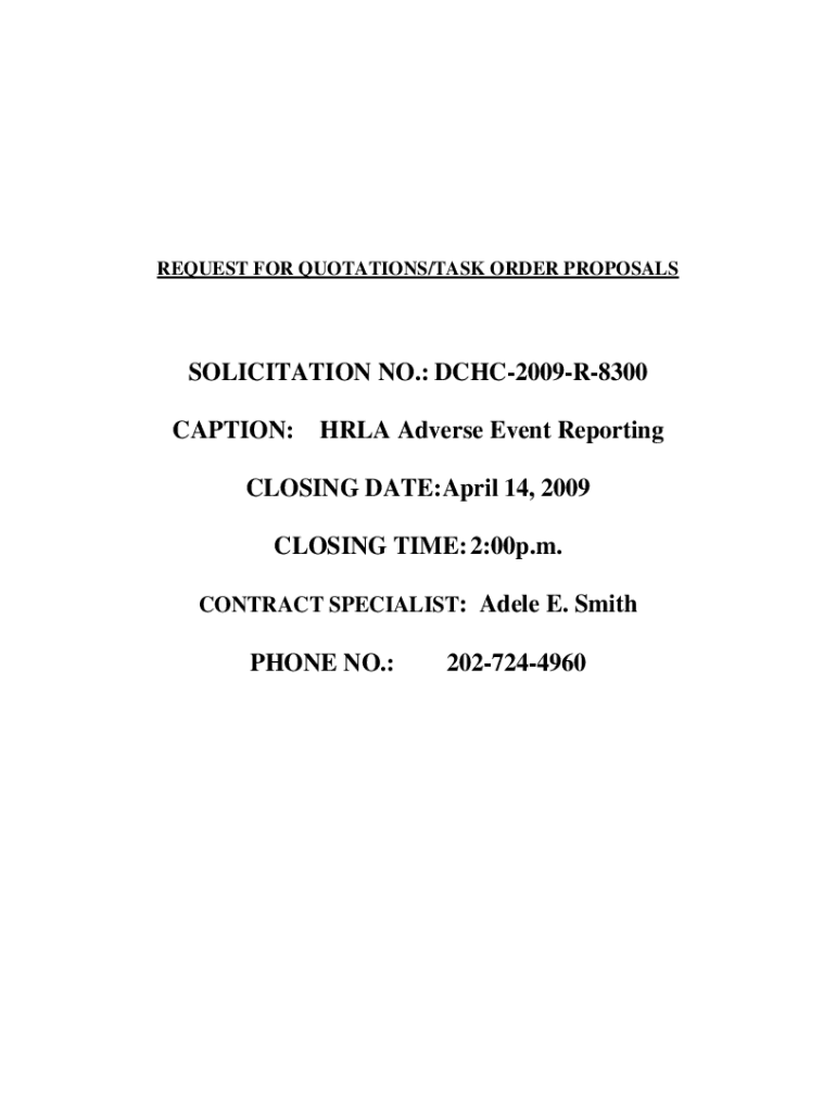 REQUEST FOR QUOTATIONS/TASK ORDER PROPOSALSSOLICITATION NO.: DCHC2009R8300