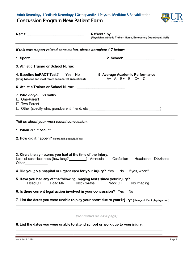 Get the free Name: Referred by: If this was a sport related ... - URMC
