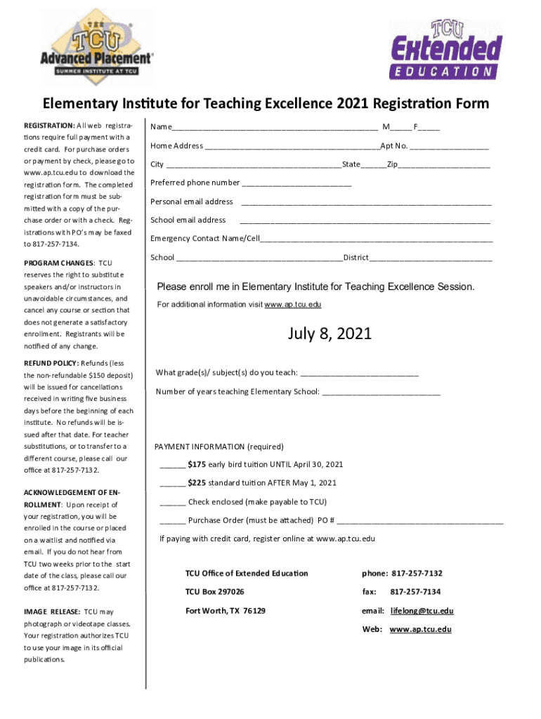 Get the free Elementary Institute for Teaching Excellence ... - ap.tcu.edu