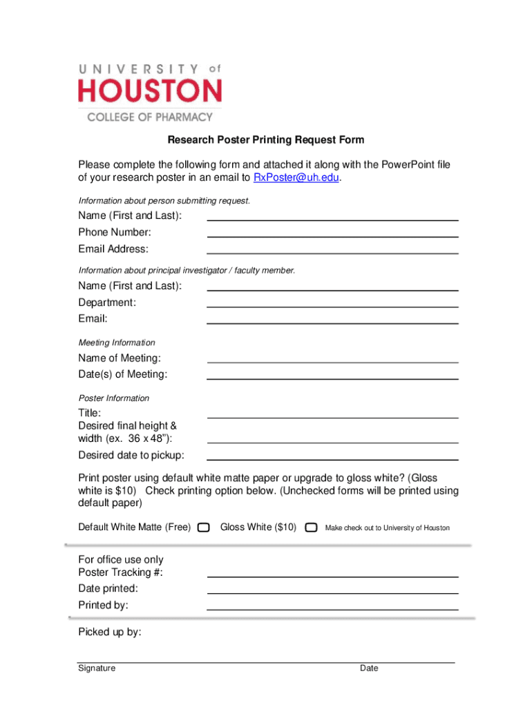 Get the free Research Poster Printing Request Form - University of Houston