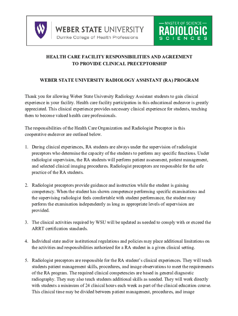 WEBER STATE UNIVERSITY RADIOLOGY ASSISTANT (RA) PROGRAM