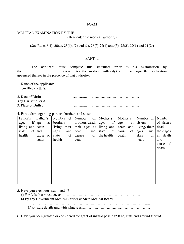 The Medical Examination Form is a healthcare document used by applicants to provide their medical history and undergo a medical examination by a medical authority.