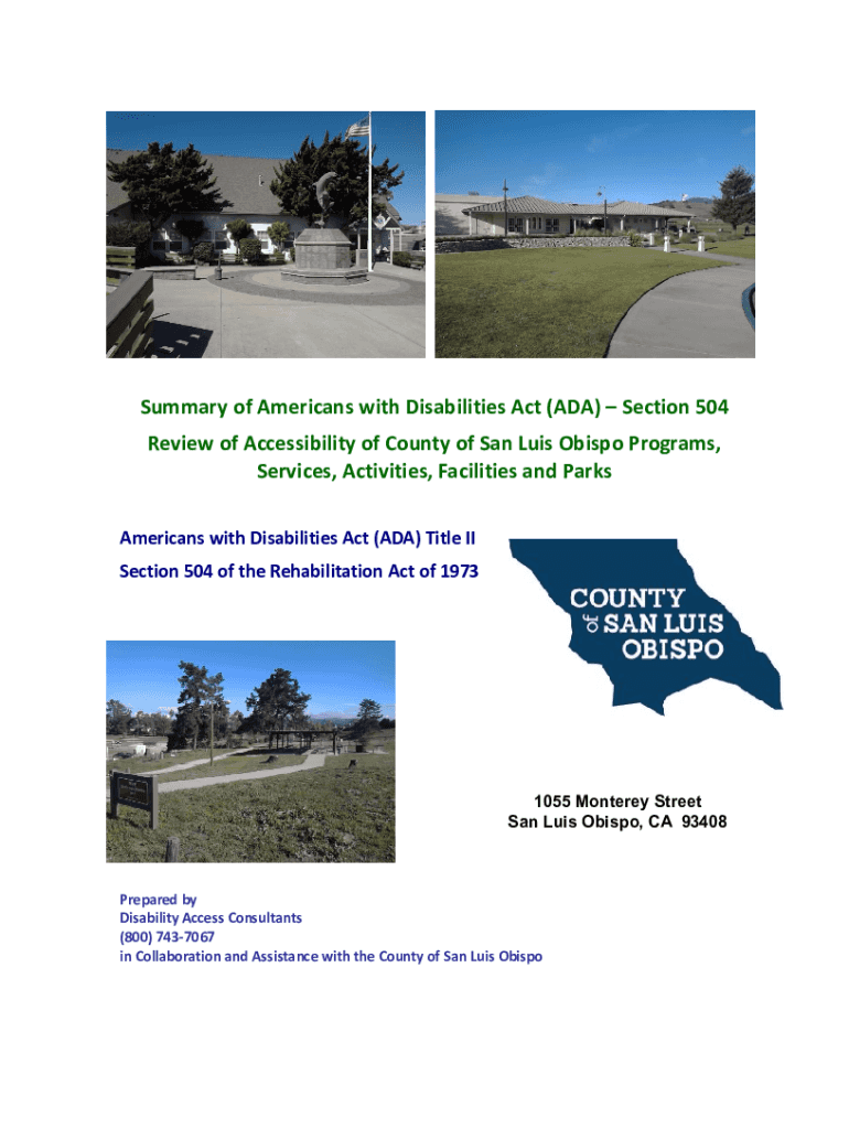 Summary of Americans with Disabilities Act (ADA) Section 504 Review of Accessibility of County of San Luis Obispo Programs, Services, Activities, Facilities and Parks Americans with Disabilities Act