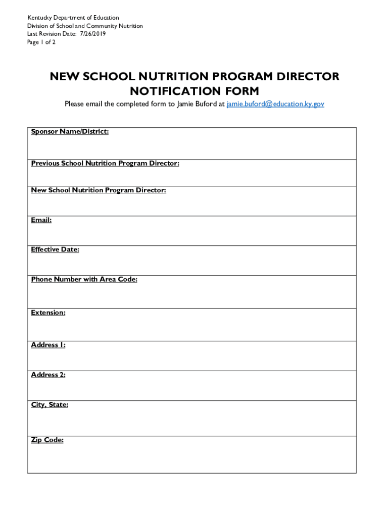 Last Revision Date: 7/26/2019-Page 1 of 2NEW SCHOOL NUTRITION PROGRAM DIRECTOR