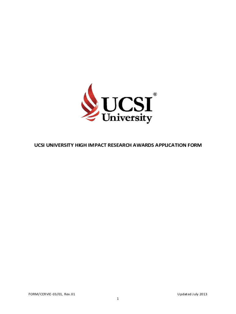 Get the free High Impact Research Award Application Form - UCSI University