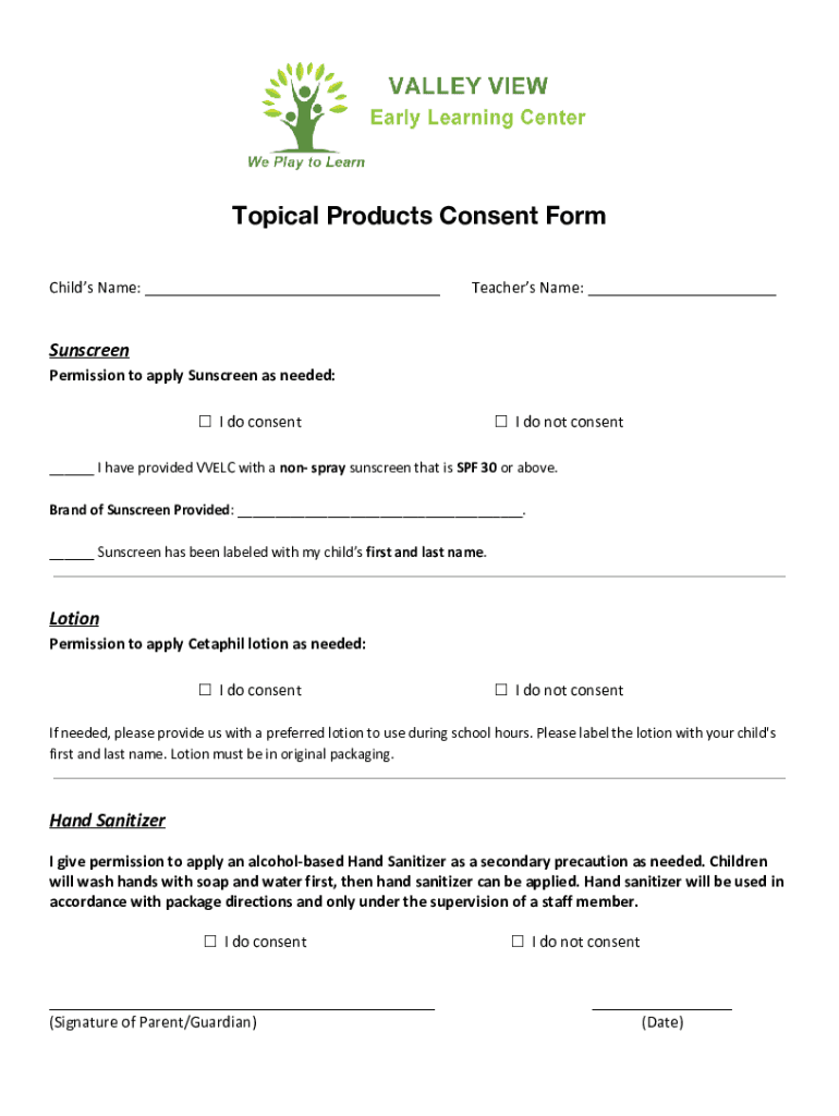 Get the free Topical Products Consent Form