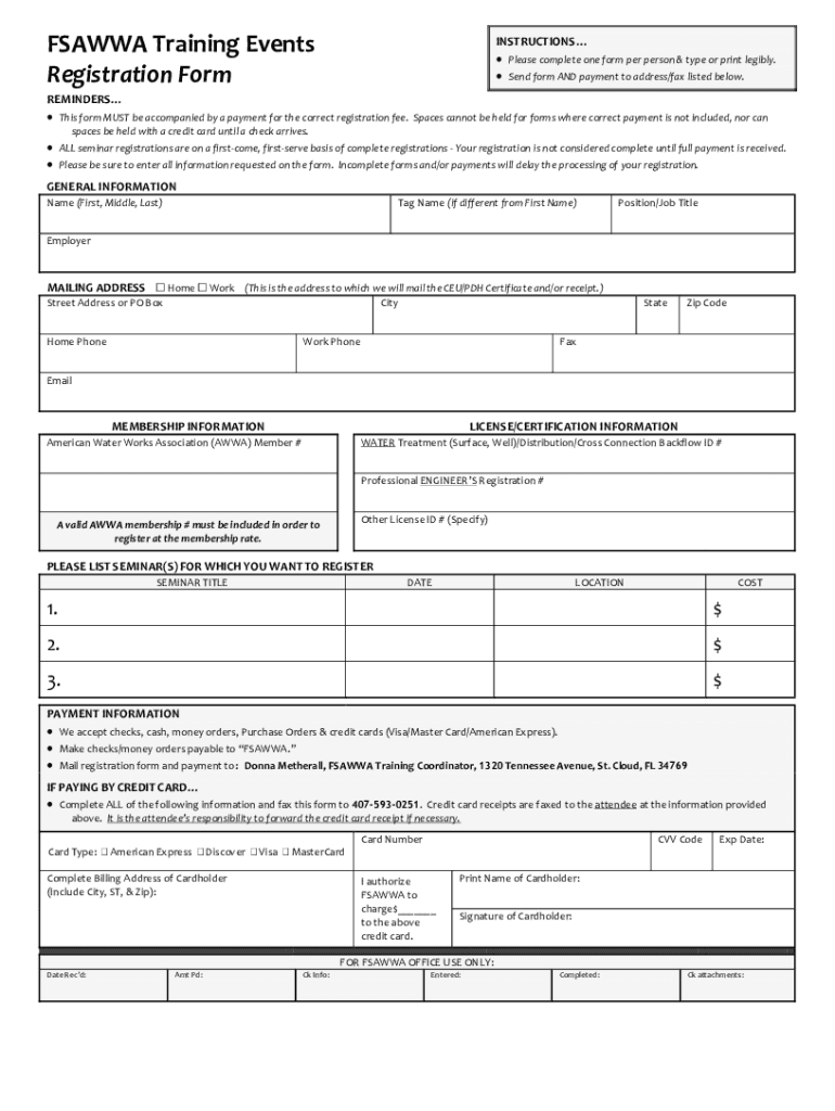 FSA WWA Training Events Registration FormINSTRUCTIONS Please complete one form per person & type or print legibly. Send form AND payment to address/fax listed below. REMINDERS This form MUST be accompanied
