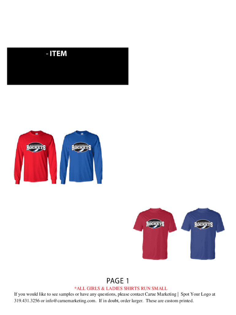 VAN ALLEN Order Form 2016 ITEM Short Sleeve Gilda Ultra Cotton Shirt COLORS Red or Goalmouth SMALL YOUTH LARGE. . . . . . . . . . . . . . . . . . . . . . . ......... $13.00 ADULT SMALL ADULT XL. .