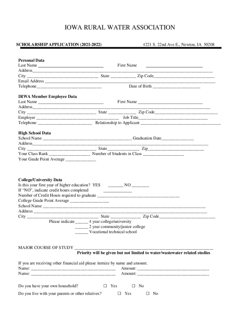 Get the free Iowa Rural Water Scholarship Trust Student Scholarship ...