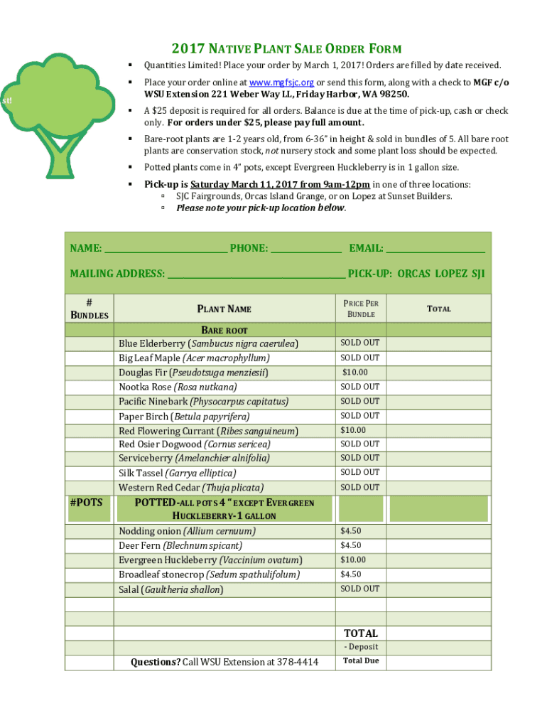 2017 NATIVE PLANT SALE ORDER FORMS ale Native Plant Sale