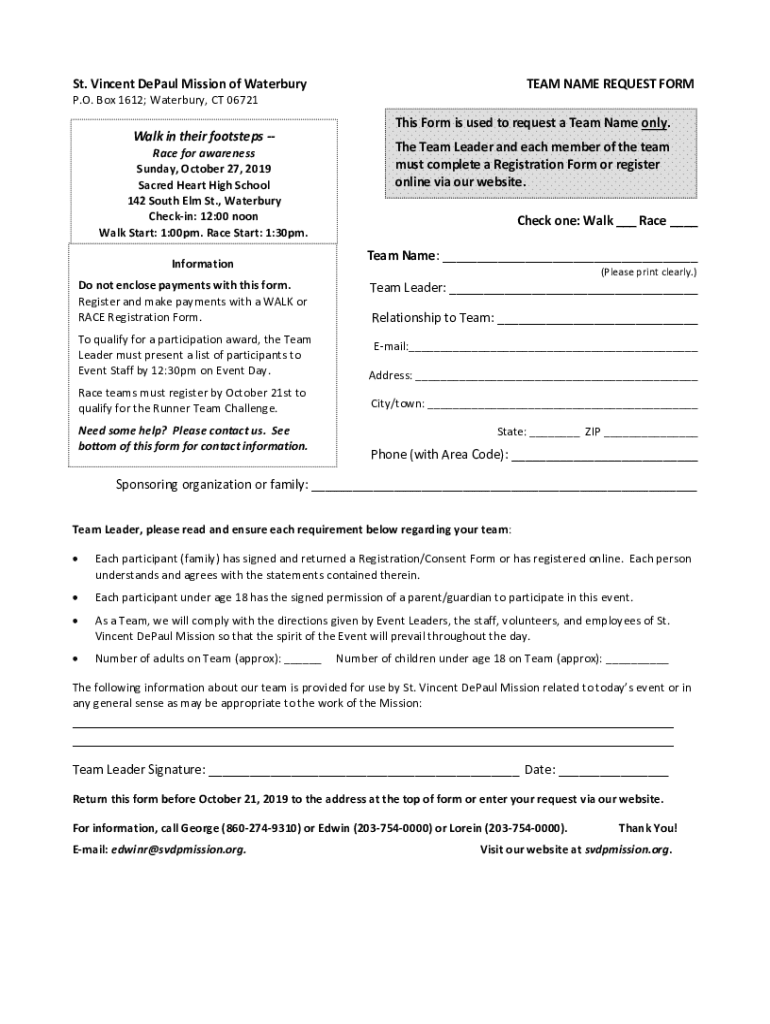 Get the free St. Vincent DePaul Mission of Waterbury TEAM NAME REQUEST ...