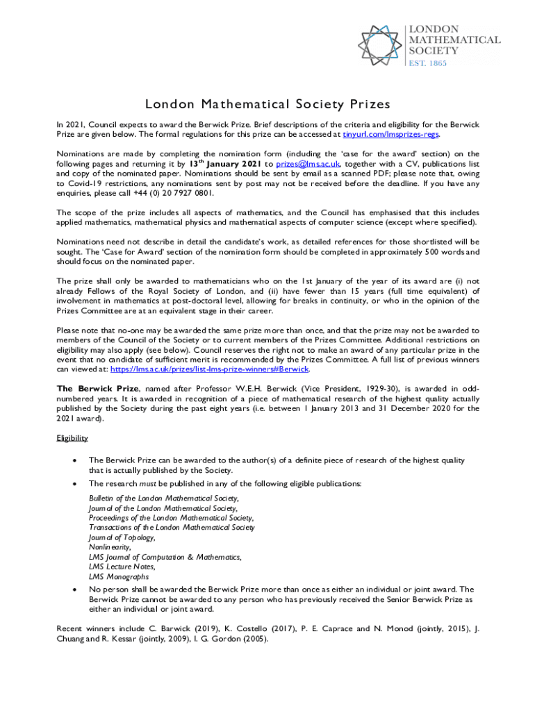 International Prizeslondon Maformmatical Societylondon is not the form you're looking for?Search for another form here.