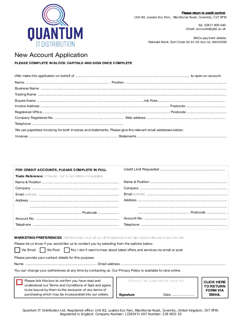 Get the free New Account Application - Quantum IT Distribution