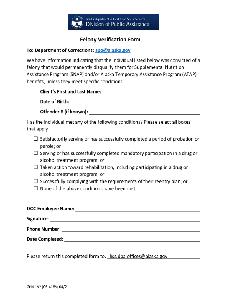Obtain a copy of the felony verification form from the appropriate entity or organization.