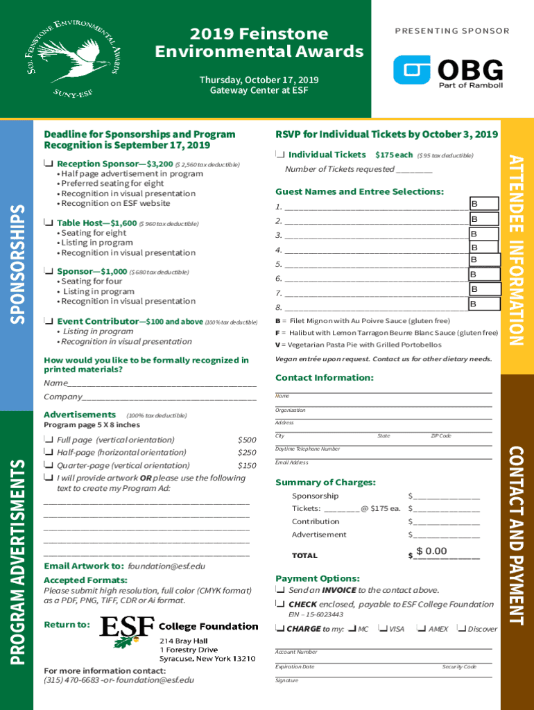2019 Sandstone Environmental Awards R E SE NT I NG SO N SO Thursday, October 17, 2019, Gateway Center at Deadline for Sponsorships and Program Recognition is September 17, 2019SPONSORSHIPS Half page