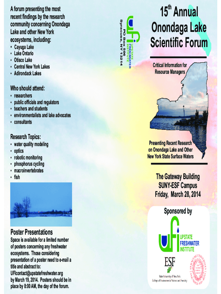 UPSTATE FRESHWATER INSTITUTE Cayuga Lake Ontario Otis co Lake Central New York Lakes Adirondack LakesthPO Box 506 Syracuse, NY 13214A forum presenting the most recent findings by the research community