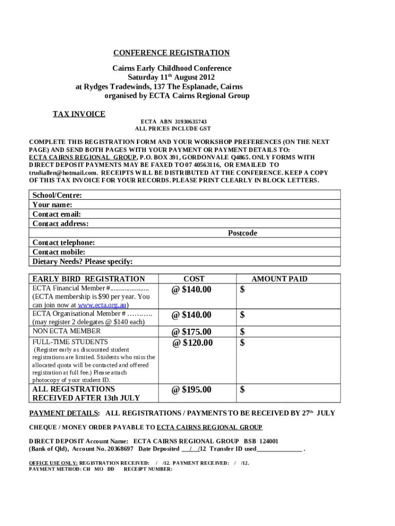What is Cairns Early Childhood Conference Form?