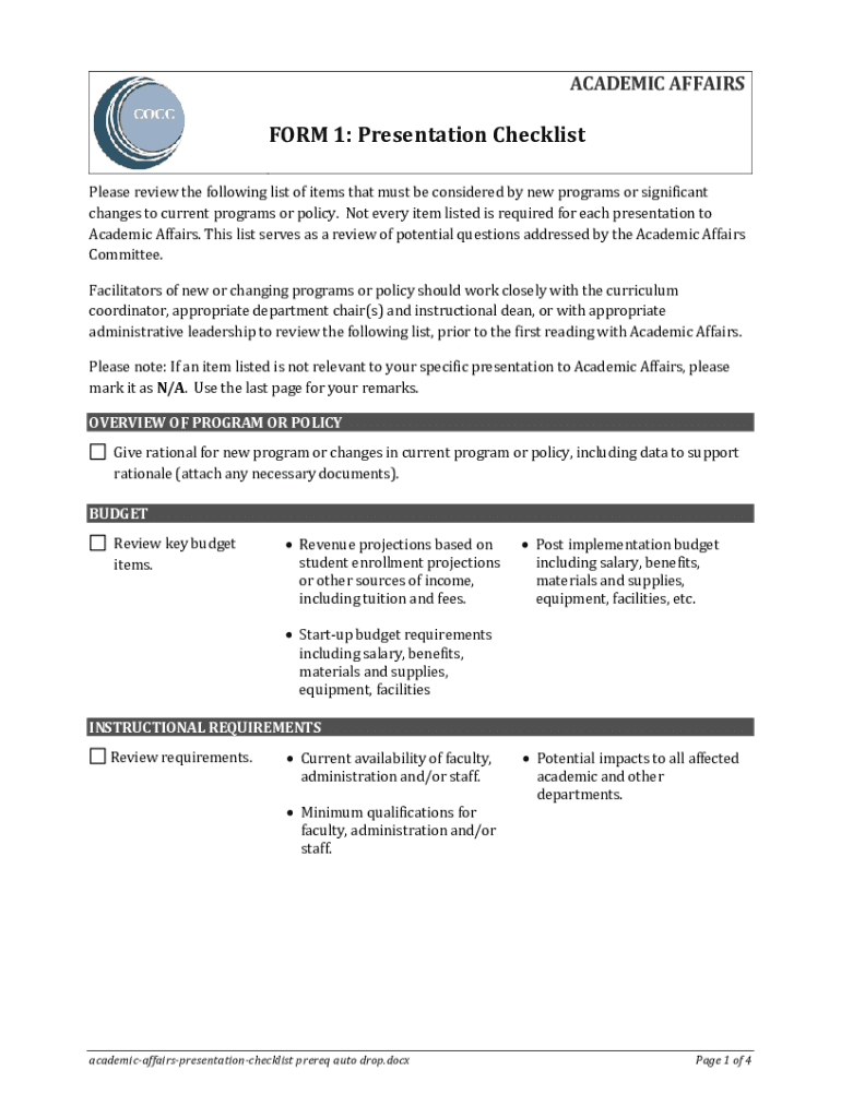 ACADEMIC AFFAIRSFORM 1: Presentation Checklist