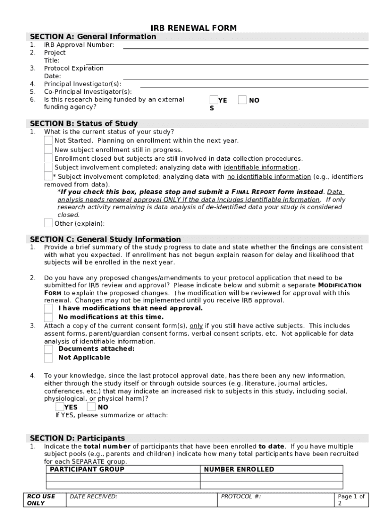 How should you fill out the IRB RENEWAL - Central Oregon Community College template