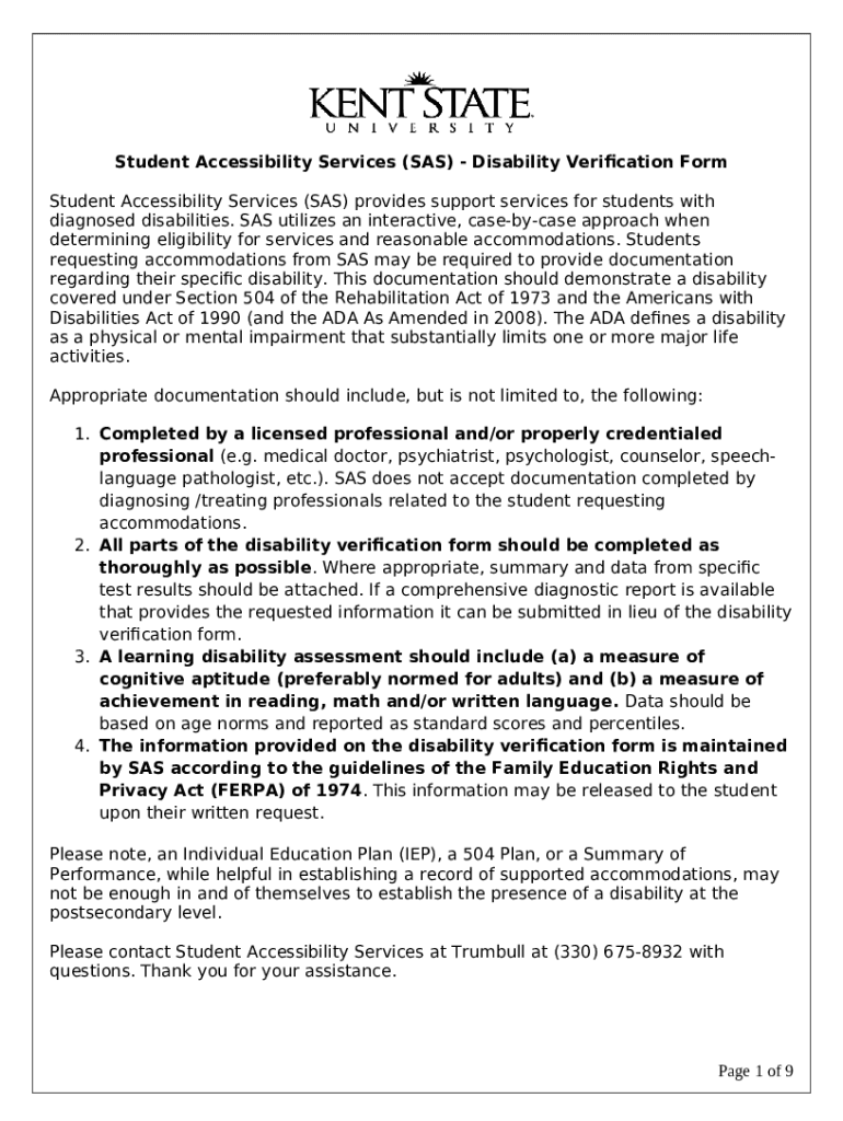 What is Student Accessibility Services (SAS)Roger Williams ... Form?