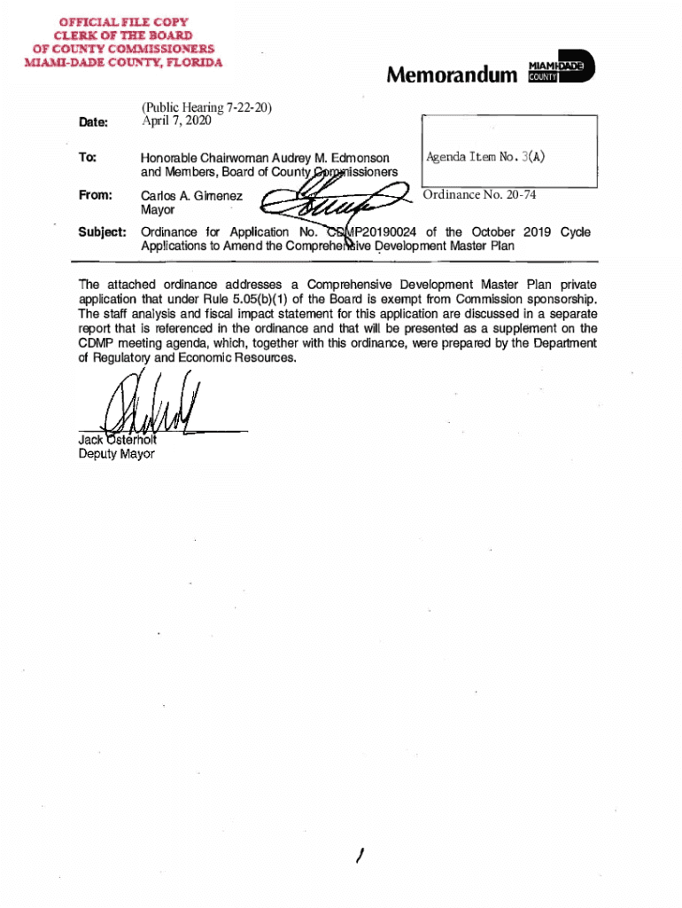 Get the free O#20-74 Ordinance No. 20-74 - Miami-Dade County