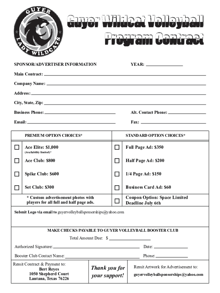 How to fill out guyer wildcat volleyball program