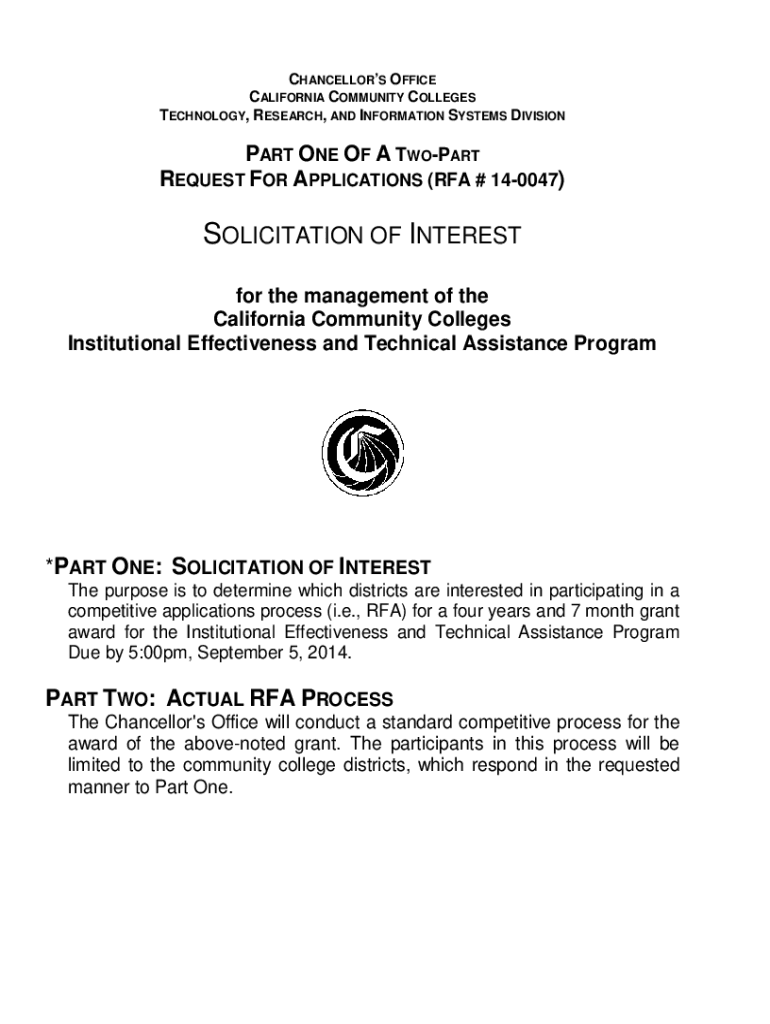 REQUEST FOR APPLICATIONS (RFA # 140047)SOLICITATION OF INTEREST