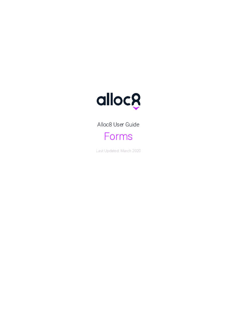 Alloc8 User Guidebooks Last Updated: March 2020Forms Overview2Form Templates Page3Creating a form4Using the form builder9Standard elementsEditing elementsSystem FieldsRepositioning elements and creating