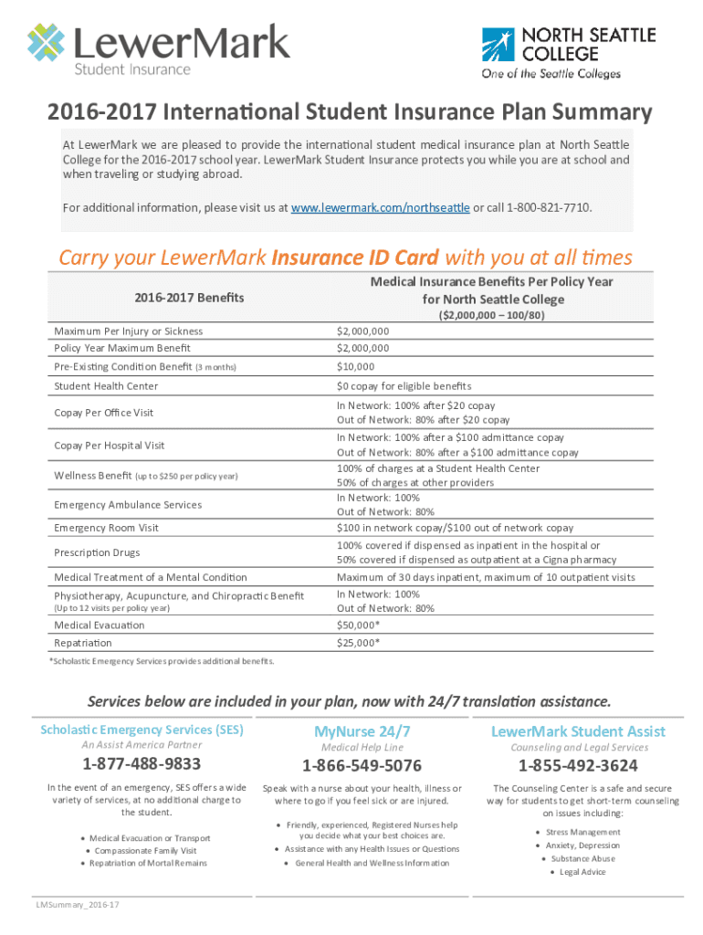 At Watermark we are pleased to provide the international student medical insurance plan at North Seattle
