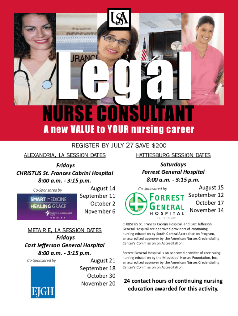 Legalese consultant Anew value to YOUR nursing career register by July 27 save $200alexandria, la session dates Fridays CHRISTS St. Frances Cabrini Hospital 8:00 a.m. 3:15 p.m. August 14 Cosponsored