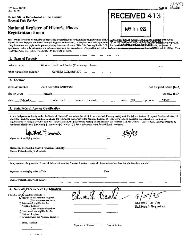 NFS Form 10900 (Rev. 1090)RECEIVED 413United States Department of the Interior National Park ServiceNational Register of Historic Places Registration Format 3 I I995This form is for use in nominating