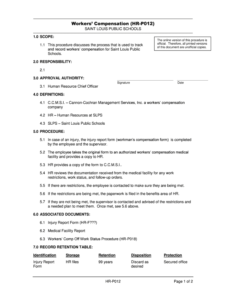 Get the free Workers39 Compensation HR-P012 - St Louis Public Schools - slps