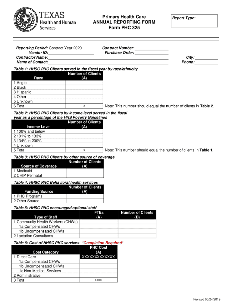 ANNUAL REPORTING FORM PHC 325Reporting Period: Contract Year 2020