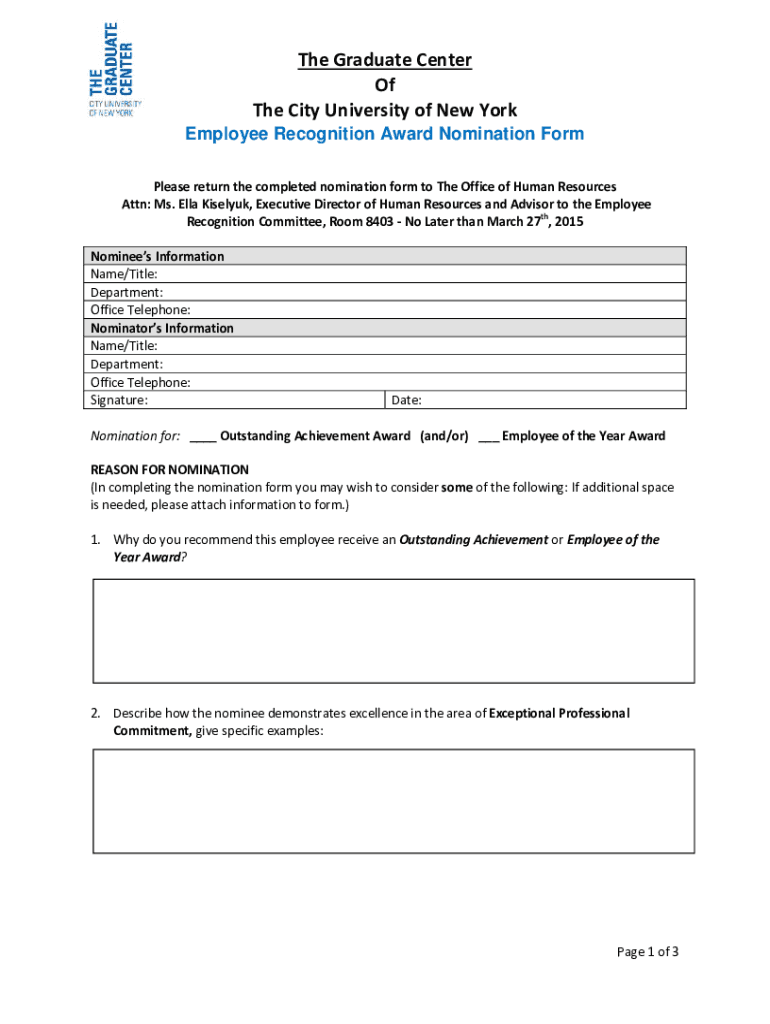 Get the free Nomination Form - The Graduate Center, CUNY