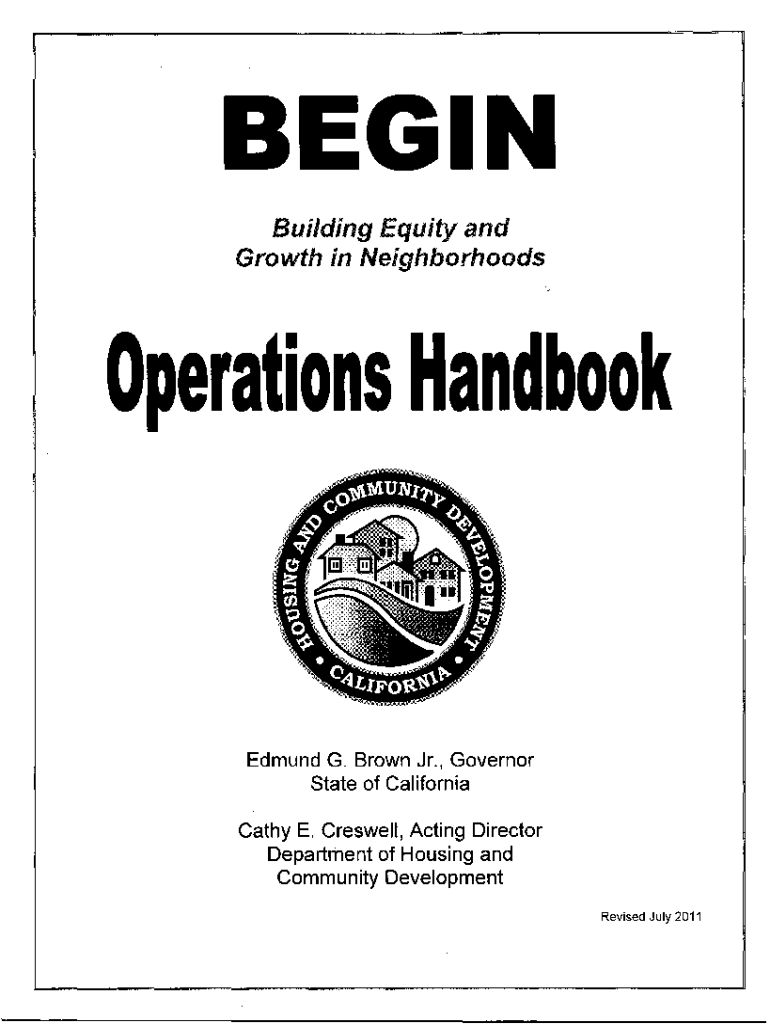 BEGIN Building Equity and Growth in Neighborhoodserations Han book Edmund G. Brown Jr., Governor State of California Cathy E. Creswell, Acting Director Department of Housing and Community Development